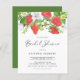 Mit dieser individuell gestaltbaren Brautdusche laden wir Sie zu Ihrer Veranstaltung ein. Es verfügt über eine Aquarellgarage mit Erdbeeren und Erdbeerblüten. Personalisieren Sie diese Einladung zur Erdbeerdusche, indem Sie Ihre eigenen Veranstaltungsdetails hinzufügen. Diese Brautdusche ist ideal für Brautpartys im Sommer.