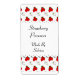 Ein benutzerdefiniertes Konserven- oder Seifenlabel mit benutzerdefinierten Skriptbuchstaben in zwei Größen und einem Retromuster aus roten Erdbeeren und weißen Erdbeeren-Blume. Klicken Sie auf Anpassen, um Schriftart, Größen und mehr zu ändern.