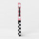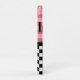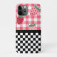 Whimsical Spring / Summer Thema Telefon Gehäuse bietet die obere Hälfte der roten und rosa Erdbeeren auf rosa Gingham und unten Hälfte der schwarz-weiß Schachbrett.