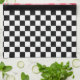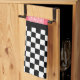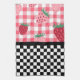 Whimsical Spring / Summer Küchentücher Design verfügt über die obere Hälfte der roten und rosa Erdbeeren auf rosa Gingham und die untere Hälfte von schwarz-weiß Schachbrett.
