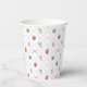 Wasserfarbe Erdbeeren Beeren Erstgeburtstag Papier Becher auf einem Rippenliegestuhl Hintergrund
