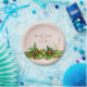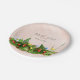 Diese Teller aus Erdbeereihen sind mit winzigen, reifen, roten, wilden Erdbeeren in wilden Erdbeeren-Pflanze und winzigen, gelben Butterbeeren, blauen vergessen-me-nots und einem Single, das zwischen den Erdbeeren-Blätter auf einem kaum rosa diagonalen Pinselstrich herausschaut - mit den Namen von Jungverheirateten und dem Hochzeitstag - von kokucken_d_zynes | Teil der Sammlung von Erdbeeren und Wildblumen von Katzdzynes >> https://www.zazzle.com/collections/119185498872390969
