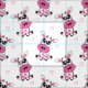Trendy Erdbeerkuh mit rosa Pflaster. Kleine subtile rosa Herzen auf weißem Hintergrund.
