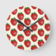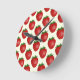 Erdbeermuster, Rote Erdbeeren, Obst, Leaf Runde Wanduhr