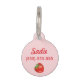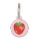 Desteis Cartoon Illustration einer yummy aussehenden roten Erdbeere auf einem hellrosa Hintergrund. Auf der Rückseite befinden sich personalisierbare Textbereiche für den Namen des Tieres und für die Telefonnummer des Besitzers.