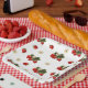 Erdbeerpapier-Teller mit Blüten Pappteller
