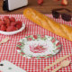 Erdbeerrote Pappteller.