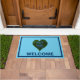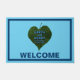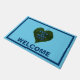 Blauer Text, "ERDE und HERZ werden mit den gleichen Buchstaben geschrieben", überlagert auf einem grünen, herzförmigen Blatt. Zusätzliche anpassbare Textauswertung, "WELCOME" erscheint ebenfalls. Sie können die Hintergrundfarbe sowie die Farben des Textes und des Randes ändern.