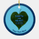 Blauer Text, "ERDE und HERZ werden mit den gleichen Buchstaben geschrieben", überlagert auf einem grünen, herzförmigen Blatt. Fügen Sie Ihren eigenen zusätzlichen Text hinzu. Sie können die Hintergrund- und Randfarbe sowie die Farbe Ihres Textes ändern.