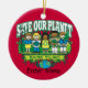 Die Kinder, die erfasst werden, um die Mitteilung von zu verbreiten, verringern, verwenden wieder und recyceln. Eine Rhode Island Fahne unter Erd-, des Tieres und des Baumsliebevollen Kindern! Gelassen uns unseren Kindern helfen, unseren Planeten zu retten! Schöne runde personalisierte Weihnachtsverzierung