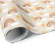 Dieses Packpapier hat eine Streuung von warmen, goldenen, sonnen, weißen flauschigen Wolken und drei Streifen Regenbögen aus Terracotta rot, braun und greige für ein neutrales und glückliches bohemianisches Muster perfekt für geschlechtsneutrale Babyduschen oder Geburtstagspartys.
