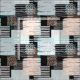 Erdfarben abstraktes geometrisches Muster. Hellblaue und schwarze Akzente. Messy Linien und Quadrate verschließen Formen.