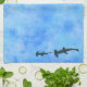Geschichten aus dem Sea Kitchen Handtuch. Schönes blaues grünes Wasser mit Haien schwimmen entlang. Fügen Sie Ihr eigenes Zitat, Ihren Namen oder Ihre Monografie hinzu.