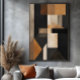 Veredeln Sie Ihre Einrichtung mit diesem abstrakten Kunstwerk, das die Solidität von Schwarz mit der Wärme von erdigen und goldenen Tönen vereint. Gealterte Texturen und geometrische Formen schaffen ein anspruchsvolles Stück, perfekt für moderne Umgebungen, die Tiefe und zeitlose Eleganz suchen.