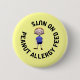 Heller gelber Knopf mit "Erdnuss-Allergie füttern keine Nüsse". Text liest "Erdnuss-Allergie füttern kein nuts"