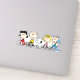 Karo aus Lucy, Charlie Brown, Snoopy, Sally und Linus, die hintereinander sitzen.