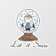 Karo in dieser festlichen Grafik mit Charlie Brown in einer Schneemasse, die die Worte "Let It Snow" enthält.