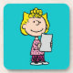 Sally ist die liebenswerte jüngere Schwester von Charlie Brown. Karo in diesem niedlichen Peanuts-Design mit Sally, vielleicht mit einem Buchbericht.