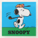 Snoopy, der geliebte Beagle aus dem Peanuts-Comic, ist in diesem Design dargestellt, das einen Golfclub umschwingt.
