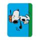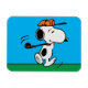 Snoopy, der geliebte Beagle aus dem Peanuts-Comic, ist in diesem Design dargestellt, das einen Golfclub umschwingt.