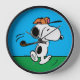 Snoopy, der geliebte Beagle aus dem Peanuts-Comic, ist in diesem Design dargestellt, das einen Golfclub umschwingt.
