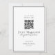 Elegant, modern, handschriftlich, weiß, Hochzeitskarte mit Paarname und Hochzeitsdatum, inkl. QR Code für die Foto Gallery. Feiern Sie Ihre Liebe und begrüßen Sie Ihre Gäste stilvoll mit unserer individuell gestalteten Card! Achten Sie darauf, dass von Ihrem Hochzeitstag an kein besonderer Augenblick unbemerkt bleibt! Diese elegante QR-Code-Karte ist eine unterhaltsame und interaktive Art, Fotos von Ihren Gästen zu sammeln. Platzieren Sie die Karten an Ihrem Empfang oder verteilen Sie sie an Ihrem Veranstaltungsort, um die Gäste zu ermutigen, an einer einzigartigen Herausforderung teilzunehmen! Laden Sie Ihre Lieben ein, den QR-Code zu scannen und ihre Schnappschüsse hochzuladen - ob es sich dabei um den magischen "First Kiss" während Ihrer Zeremonie oder um den fröhlichen Gruppentoast am Empfang handelt. Mit einem kurzen Scan können Ihre Gäste ihre Fotos in Ihre personalisierte Hochzeitsgalerie einbringen und so einen Single nicht verpassen. ✨ Wie es funktioniert: Erstellen Sie Ihre Hochzeitsgalerie - Set einen Online-Raum für das Sammeln von Fotos. Passen Sie diese Karte an - Bearbeiten Sie die Namen, das Datum und den QR-Code so, dass sie Ihren Hochzeitsdetails entsprechen. Lass den Fun Begin - Verleih die Karten und ermutige die Gäste, ihre Bilder zu scannen und zu teilen. Vollständig anpassbar - Individualisieren Sie jedes Detail auf Ihren Hochzeitsstil. Efforless memory collection - Verabschieden Sie sich von vermissten phantastischen Aufnahmen. Interaktiv und unterhaltsam - Erleben Sie verlobt Ihre Liebe! Machen Sie Ihre Hochzeit zu einem unvergesslichen Erlebnis - eines, das durch die Augen Ihrer Gäste weiterlebt!