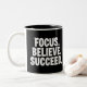 Mit diesem bestärkenden Design, das die Reise zum Erfolg unterstreicht, stärken Sie Ihre Denkweise: "Fokus. Glauben Sie. Erfolg." Die strukturierte und kühn geschriebene Schrift spiegelt Kraft und Entschlossenheit wider und ist somit eine ideale Wahl für alle, die Motivation und Positivität suchen. Eine Erinnerung, fokussiert bleibe, an deine Fähigkeiten zu glauben und Größe Schritt für Schritt zu erreichen.