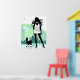 Dame Walking Hund mit Stadt und Flugzeug im Hintergrund. Erstellt in Grün-, Schwarz- und Weißtönen. Ohne Hunde würden manche Leute nie spazieren gehen.