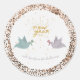 Schöne Imitate Gold Glitzer sternenverstreut Design mit Tauben, das Symbol der Ruhe, die Vorstellung des neuen Jahres. Dieser niedliche Round Sticker hat einen dekorativen typografischen Text, der vollständig mit Ihrem eigenen Namen und Gruß angepasst werden kann. Elegant auf der Rückseite Ihrer Weihnachts- und Neujahrskarten, um Freude & Positivität über die festliche Saison zu verbreiten.