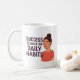 Eine motivierend Tasse für Studierende und Unternehmerinnen, Geschäftsinhaber. Das Zitat: Erfolg basiert auf täglichen habbis. Eine Grafik einer Frau, die meditiert