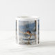 Hübscher Blauvogel, der über einem Ast ruht, vor Schneekulisse mit den inspirierenden Worten Möge der Blauvogel des Glücks immer in dir liegen. Naturfotografie von Susan.