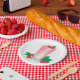 Mit diesen Tellern zum Thema Beerensmoothie, die sich perfekt für Party, Brunch oder Fruchtsfeiern eignen, werden Sie stilvoll verwöhnt. Die farbenfrohe Gestaltung mit einem rosa Getränk, saftigen Himbeeren und üppig grünen Blätter verleiht jedem Tisch ein erfrischendes Ambiente. Ideal für Geburtstage, Picknick und Smoothie-Bar.