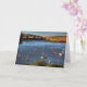 Ein schönes notelet/eine Karte, die eine Ansicht des Flusses Avon bei Bantham, auf der Südwestküste von England zeigt. Dämmerung vereinbart herein für die Nacht und die festgemachten Segelboote und -produkteinführungen aalen sich in den letzten Strahlen des sterbenden Tages - eine gewöhnlich englische Flussszene während des Spätsommers.