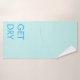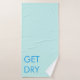 Dieses Badetuch ist schlicht, minimalistisch, mit hellblauen Buchstaben vor einem hellen, minzgrünen Hintergrund. Passen Sie dieses Handtuch mit Ihrer eigenen Nachricht an oder verließ Sie den Nonsense GET DRY Slogan wie es ist.