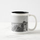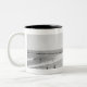 Erhöhte Ansicht der Promenade und des Strandes B&W Zweifarbige Tasse
