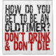 Wie kommt es, dass man ein alter Zeitgeber wird? Trinke nicht und die nicht! Ein alter 12-Stufen Erholung Witz oder Slogan. Zwölf Jahre Oldtimers und mein Sponsor sagen das die ganze Zeit. Entworfen von Henry Nelson von Wichita Kansas
