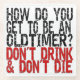 Wie kommt es, dass man ein alter Zeitgeber wird? Trinke nicht und die nicht! Ein alter 12-Stufen Erholung Witz oder Slogan. Zwölf Jahre Oldtimers und mein Sponsor sagen das die ganze Zeit. Entworfen von Henry Nelson von Wichita Kansas