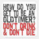 Wie kommt es, dass man ein alter Zeitgeber wird? Trinke nicht und die nicht! Ein alter 12-Stufen Erholung Witz oder Slogan. Zwölf Jahre Oldtimers und mein Sponsor sagen das die ganze Zeit. Entworfen von Henry Nelson von Wichita Kansas