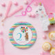 verwandeln Sie Ihren Party-Tisch in eine lebendige Feier mit Eric Carle Brown Bär Bary Beary Happy Birthday Paper Tellern! Diese reizvollen Teller zeigen Eric Carles geliebten braunen Bären aus dem klassischen Braunbären, Braunbär, Was siehst du?, sowie fröhlichen "Geburtstags-Glückwunsch" und farbenfrohen, spielerischen Akzenten. Diese Teller sind perfekt geeignet, um Kuchen, Snacks oder Appetithäppchen zu servieren. Sie bringen Lustigkeit und Charme zu jeder Geburtstagsparty oder Eric Carle-Veranstaltung. Das auffällige Design verleiht Ihrem Fest eine festliche Touch und sorgt gleichzeitig für eine schnelle und einfache Reinigung. Pair diese Teller mit passenden Servietten, Tassen und Dekorationen für ein zusammenhängendes und magisches Party-Ambiente, inspiriert von Eric Carles zeitlosem Kunstwerk. Passen Sie den Namen und das Alter Ihres Kindes an.