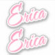 Erica-Name in kursivem Skript-Schriftart in hübsch rosa x2. Zwei Kopien des Namens.