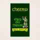 Ein individuelles Business Card Party Drink Ticket mit keltischen und alten englischen Buchstaben vorne und hinten, und Vintage Kunst eines irischen Lade Toasting mit einem silbernen Chalace. Passen Sie es an, um mehr Text oder Bilder hinzuzufügen, Schriftart zu ändern und noch mehr, sogar das Design für später retten.