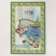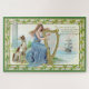 Vintages St. Patrick's Day Puzzle mit Gaelic-Text: "Erin Mavourneen! "Sweet Erin Go Bragh!" und ein wunderschönes Bild von einer irischen Leine, die mit ihrem Hund, der von ihr stehend ist, die Harfe spielt, und einem Schiff, das im Hintergrund auf dem Ozean segelt.