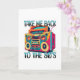 Eine nostalgische Karte mit einem Retro-Achtziger wird in der Boombox der 1980er Jahre ausgestellt.