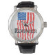 Eine Patriotische Uhr mit einer "zerrissenen" US-Flagge und den Worten "Denken Sie daran".
