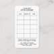 Weiße berufliche und moderne Visitenkarten mit Datum und Uhrzeit der Erinnerung, dem Firmennamen oder beruflich, Anschrift und Telefonnummer. Es enthält einen Tisch mit Platz für 5 Termine. einseitig. Wenn Sie gewollt haben, einen Text oder ein Logo auf der Rückseite hinzuzufügen, klicken Sie bitte auf die Option, um das Design zu bearbeiten. Kontaktieren Sie uns, wenn Sie Fragen haben oder ein individuelles Design für Ihr Unternehmen benötigen.