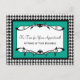 Mit diesen stilvollen Schwarz-Weiß-Terminkarten mit smaragdgrüner Erinnerung und elegantem, geschwungenen filigranen Hahnentrittmuster erinnern Sie Ihre Kunden und Kunden an ihre Friseur- und Schönheitssalon-Termine. Diese in Mode Termin Erinnerung Postkarten haben auf Vorder- und Rückseite anpassbare Texte, die für Ihre persönlichen geschäftlichen Bedürfnisse personalisiert sein können.