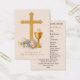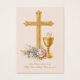 Personalisieren Sie diese schöne goldene Kreuz-, Hostien- und Kelch-Blumenmuster-Erinnerungskarte zur Erstkommunion mit einem schönen traditionellen katholischen Anima-Christi-Gebet auf der Rückseite.