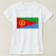 Die Vorderseite dieses T - Shirt zeigt mutig die eritreische Fahne mit ihrem charakteristischen Goldkranz auf dem roten Dreieck mit grünen und blauen Dreiecken. Hinter dem Bild befindet sich eine attraktive Karte Eritreas.