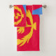 Die Eritrea-Flagge ist ein Goldemblem in einem roten Dreieck, angegrenzt auf der Spitze und der Unterseite durch die grünen und blauen Dreiecke. Die verwendeten Farben in der Flagge sind blau, grün, rot, Gelb. Der Anteil der Eritrea-Flagge ist 1: 2. Die Flagge von Eritrea wurde im Jahre 1993 adoptiert. Der erste Gebrauch von dem gegenwärtigen Flaggenentwurf war im Jahre 1993. Die letzte Änderung am Strom Eritrea-Flaggenentwurf war im Jahre 1995.