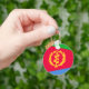 Flagge von Eritrea. Die aktuelle Flagge des Staat Eritrea wurde am 5. Dezember 1995 adoptiert und verwendet die Grundstruktur der Fahne der Eritreischen Volksbefreiungsfront, wobei der Kranz mit dem aufrechten Symbol des Olivenzweigs aus der Fahne von 1952 abgeleitet wurde. Die Fahne wird von einem roten Dreieck dominiert, das sich von der Fliege bis zur Fliege erstreckt und sich über und unter komplementären grünen und blauen Dreiecken erstreckt. Grün steht für die Fruchtbarkeit des Landes bzw. für die Landwirtschaft; Blau steht für das Meer (das rote Meer); und rot für das Blut, das im Kampf für die Freiheit verloren geht. Im roten Dreieck ersetzt ein gelbes Kranzsymbol mit 14 Blätter auf jeder Seite, das von der Flagge von 1952 abgeleitet wurde, den gelben Stern der EPLF-Flagge.